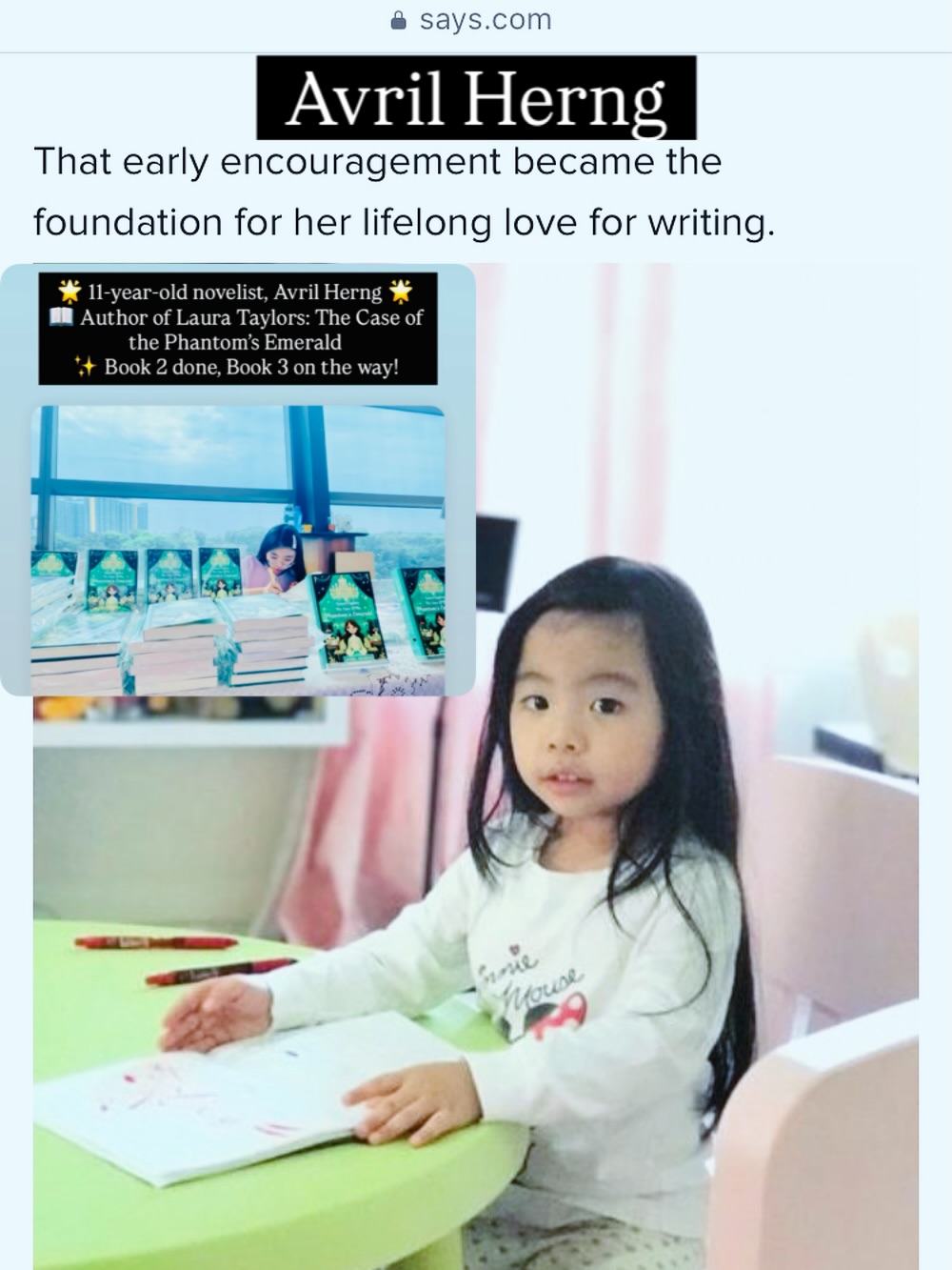 Avril Herng didn’t start with a publisher — she started with stapled paper books at home.