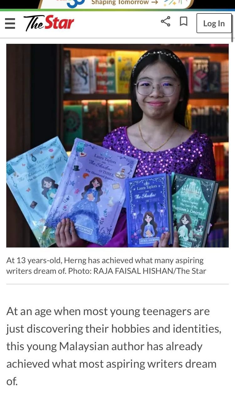 At just 13 years old, Malaysian novelist Avril Herng has marked another milestone with a double book launch at The Sunway Library by BookXcess. After publishing her debut novel titled “Laura Taylors: The Shadow of Three” last year, Herng now celebrates the release of her sequel and the illustrated editions of her novels.