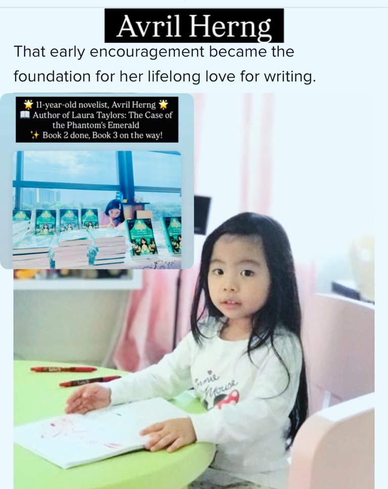 At just 12 years old, Avril has already published two mystery novels — proving that age is no barrier to imagination.